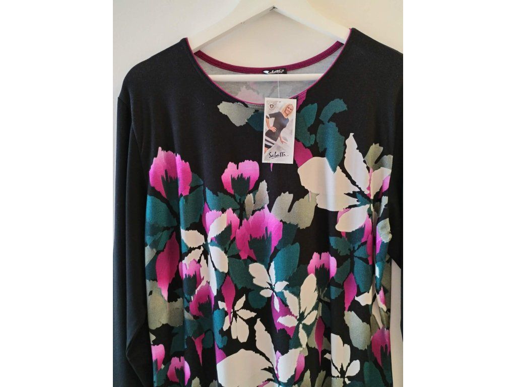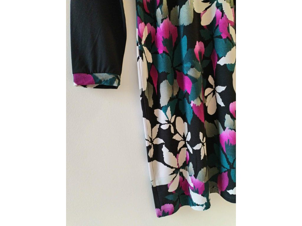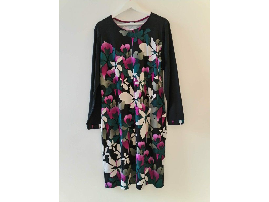 Elegantní dámské šaty od české značky Sabatti, která je známá kvalitním zpracováním a pohodlnými střihy. Model s dlouhým rukávem zaujme výrazným květinovým vzorem v kombinaci černé, bílé, zelené a růžové barvy, který působí velmi ženským a svěžím dojmem. Šaty mají pohodlný, mírně volnější střih, který lichotí postavě a zajišťuje komfort při nošení po celý den. Ideální volba do práce, na společenské setkání i běžné denní nošení – elegantní a zároveň velmi pohodlný kousek do vašeho šatníku.