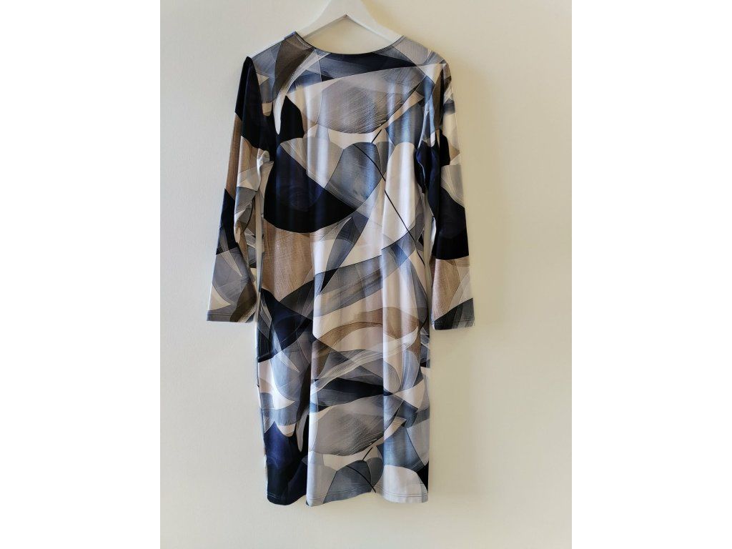 Stylové dámské šaty od české značky Sabatti, která je známá kvalitním zpracováním a pohodlnými střihy. Model s dlouhým rukávem zaujme moderním abstraktním vzorem v elegantních odstínech modré, šedé a smetanové. Volnější, přesto lichotivý střih krásně sedí na postavě a poskytuje maximální pohodlí při nošení. Příjemný materiál je ideální pro celodenní nošení – do práce, na schůzky i společenské příležitosti.