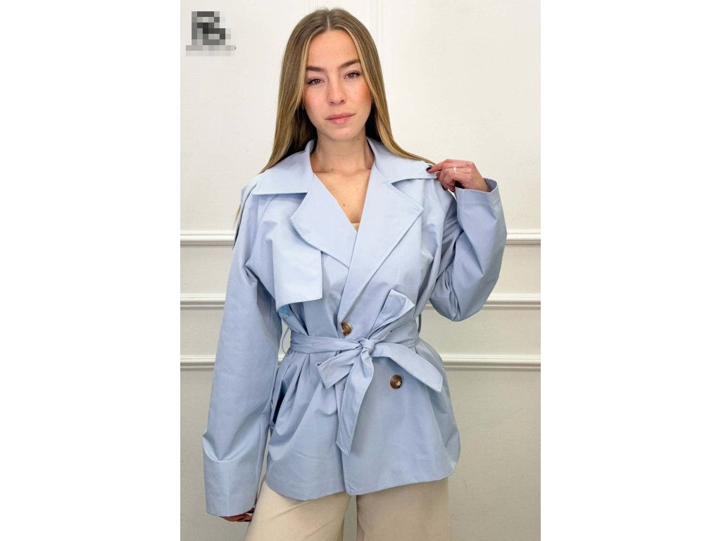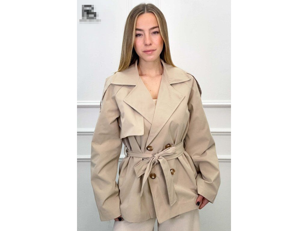 Elegantní dámský trenčkot je skvělou volbou pro jarní i podzimní dny. Stylový dvouřadý střih s ozdobnými knoflíky doplňuje pásek v pase, díky kterému lze kabátek krásně přizpůsobit postavě. Klasický límec a čistý, minimalistický design dodávají modelu nadčasovou eleganci, která se snadno kombinuje s kalhotami, šaty i sukní. Lehký a příjemný materiál zajišťuje komfort při nošení a dělá z tohoto trenčkotu perfektní kousek pro jarní i podzimní dny. Nadčasová klasika, která by neměla chybět v žádném šatníku.